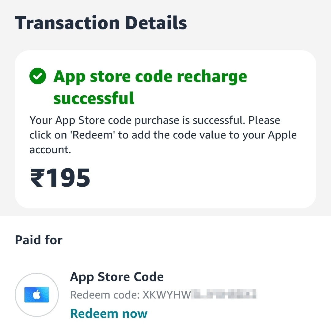 지난 7월 10일부터 시작한 Apple 인도계정을 통한 YouTube 프리미엄 구독의 연장을 위해 인도 아마존에서 1개월치 195루피를 충전했다. 이 같은 우회구독자를 색출할 것이라는 공지가 있었지만 아직까지는 별탈없는 것 같다. 체크카드로 3,207원이 청구되었다.