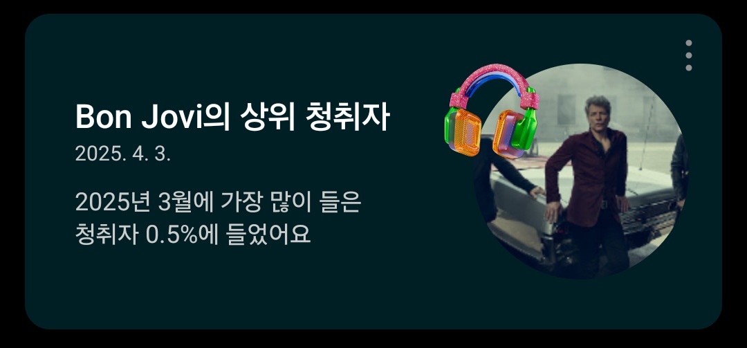 YouTube Music에서 Bon Jovi 음악을 많이 들었다고 어김없이 뱃지를 수여했다.