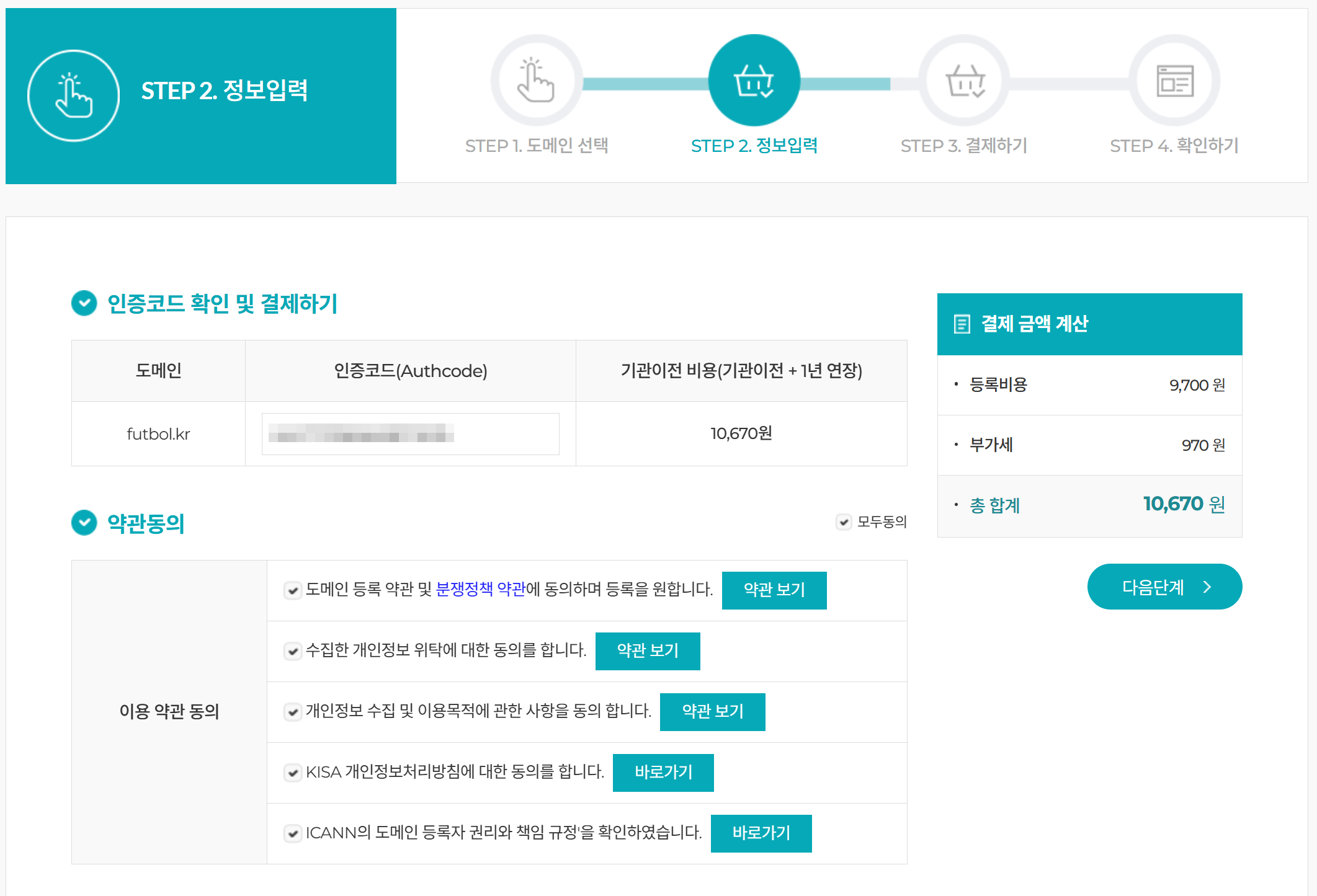 결국 아이티이지를 통해서 기관이전을 신청했다. 정가 11,500원이지만 9,700원으로 할인 중이라 부가세 포함해 10,670원의 비용이 나왔다.