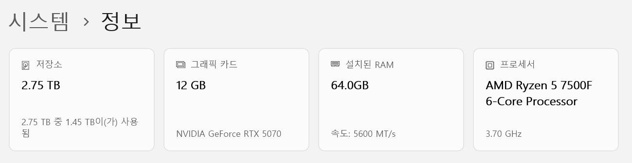 업그레이드 이후에 3600 MT/s로 뜨길래 뭔가 이상한 것 같아서 Gemini에게 물어보니 5600으로 작동되지 않는 상태라기에 안내해준대로 BIOS 설정을 바꿨더니 5600 MT/s 정상적으로 작동하는 모습이다.